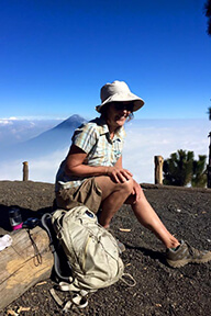 This year I climbed Acatenango, a volcano in Guatemala. It’s a two-day climb, steep and treacherous because of slippery volcanic ash. I summited at dawn as the sun came up to highlight all of the volcanoes in the distance above a low cloud cover. The closest active volcano, Fuego, erupted every hour day and night during our trek. On the 6,000 foot descent, I slipped and fell about 15 minutes from the trailhead. I heard and felt a pop and could no longer walk. Our guide carried me on his back to the waiting van and used the ice, which was cooling beers, to reduce the swelling on my ankle and foot.